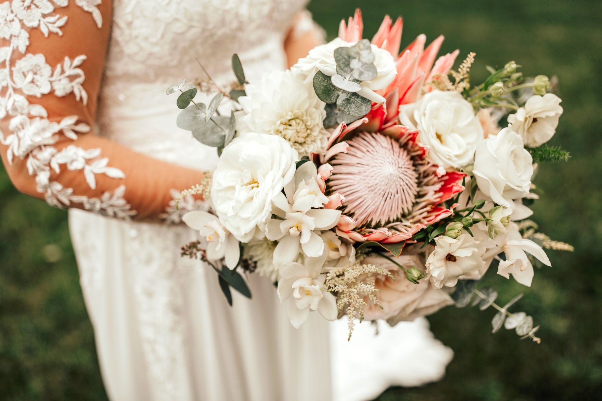 Roses, Scabiosa, Leucadendron, Lisianthus