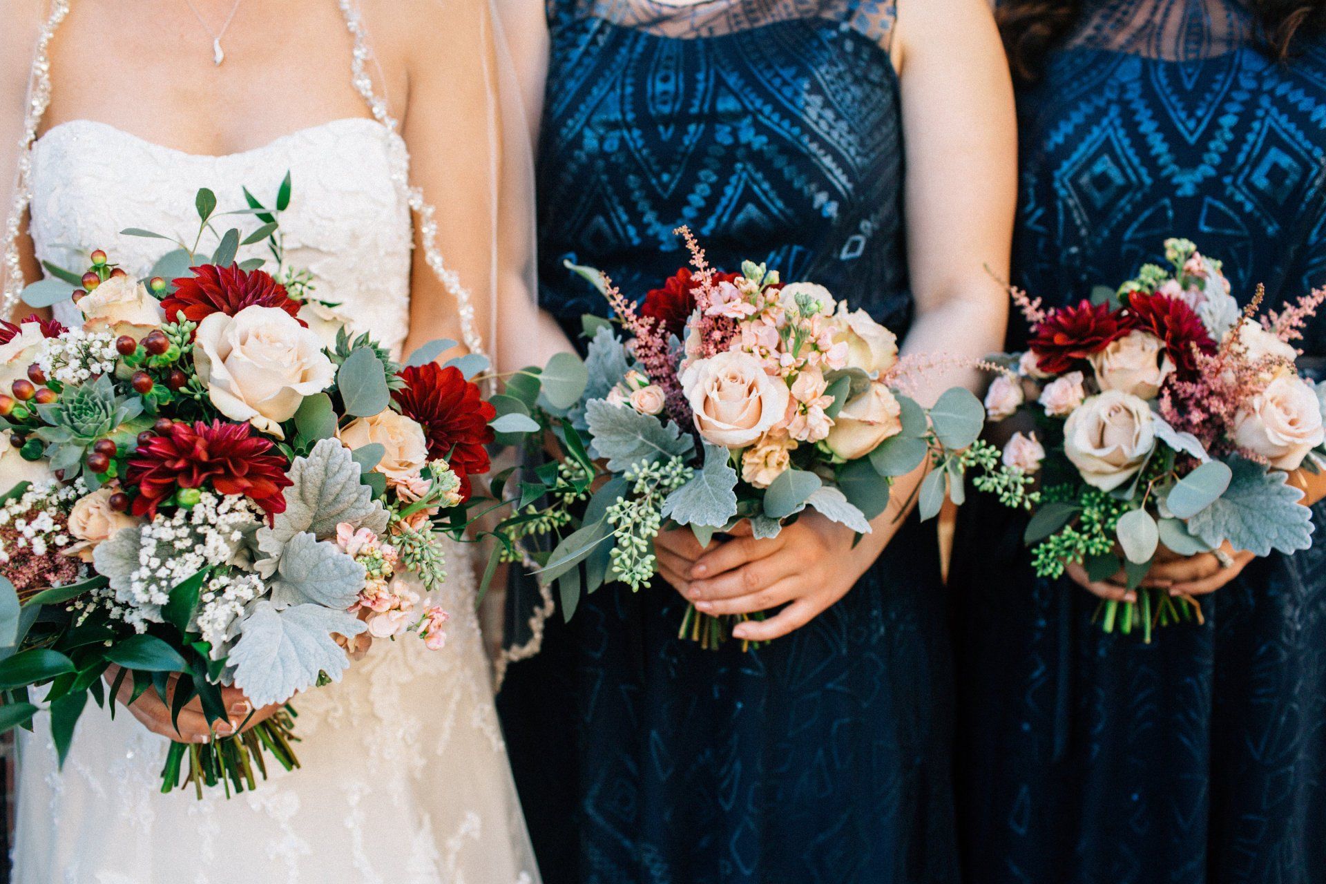 Encompassing a broad range of styles from Gatsby to Bohemian, vintage appeals to many brides. Because of its rustic, relaxed vibe this style works well in a variety of venues. The color palette includes burgundy, blush, slate blue, and mauve.