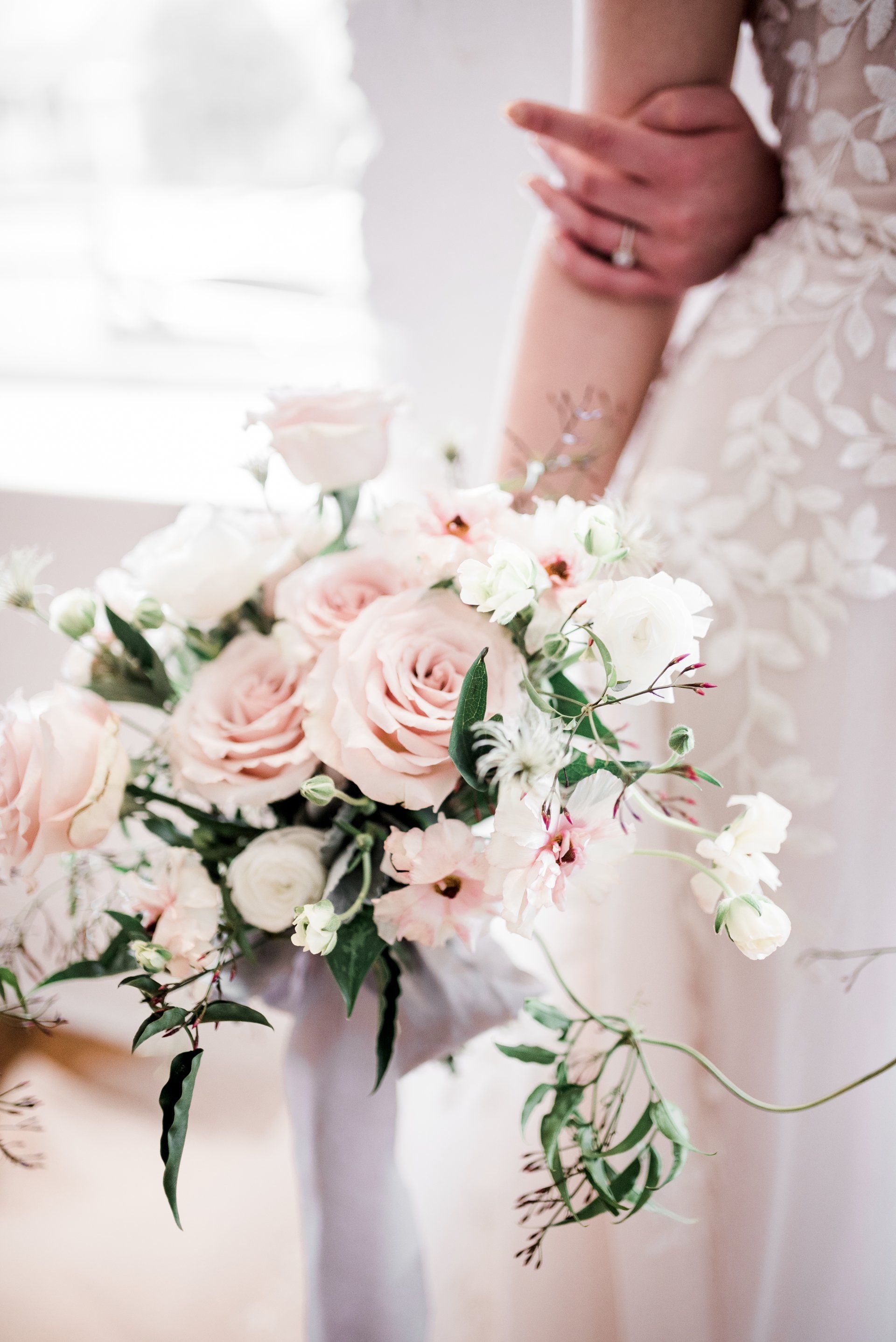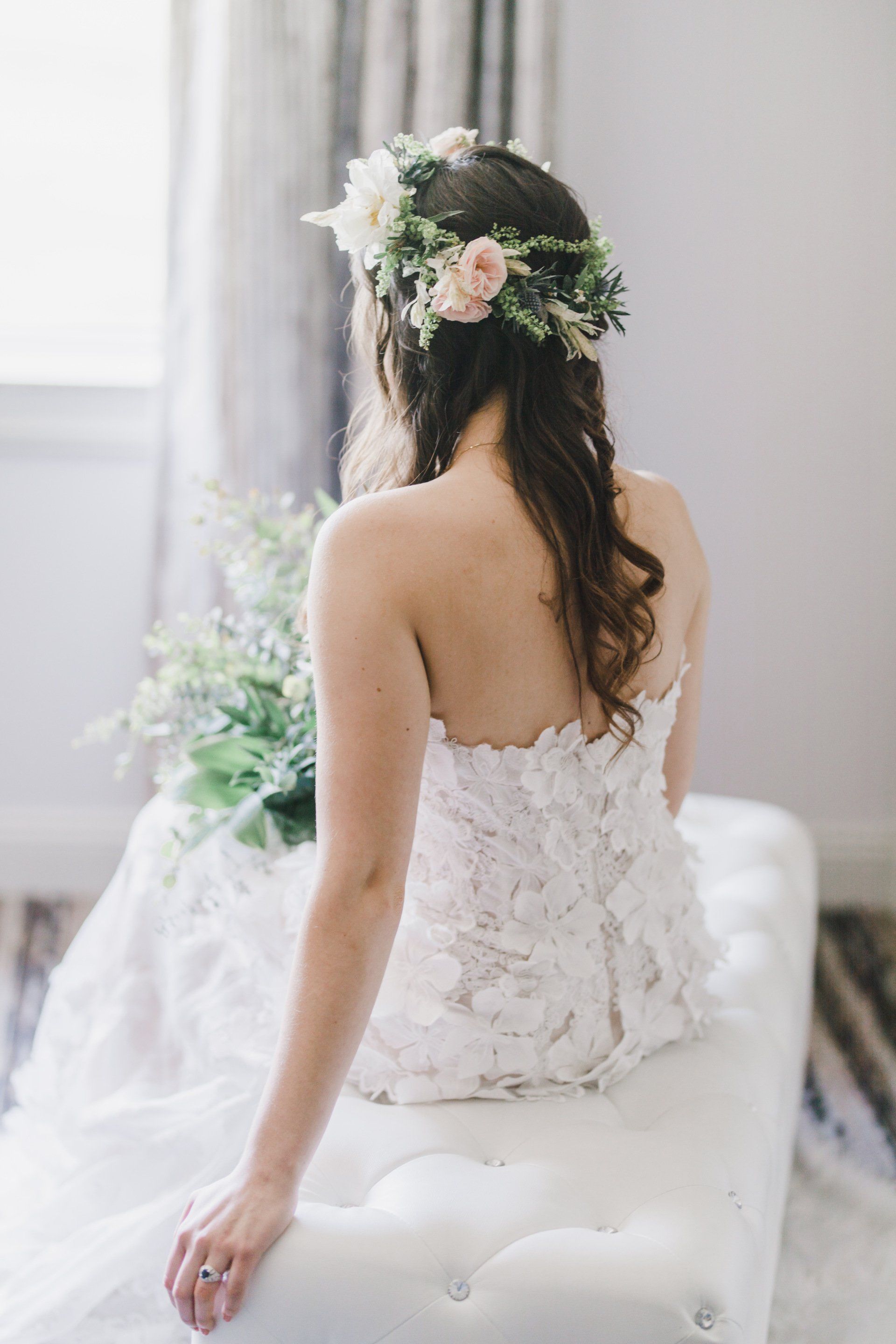 Free flowing presentation drawing from woodland themes by incorporating vines, greenery, herbs, etc. The color palette is generally lighter using pastels of pink, blush, yellow, light blue.